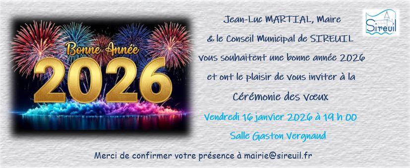 VOEUX DU MAIRE 16.01.26 Le mardi 06 Jan 2026 à 10h39 AM Les categories associées : Mot du MaireJ’aime ma villeNous contacterDroits et DémarchesNos agendasJournal communalAssociationsPartager :